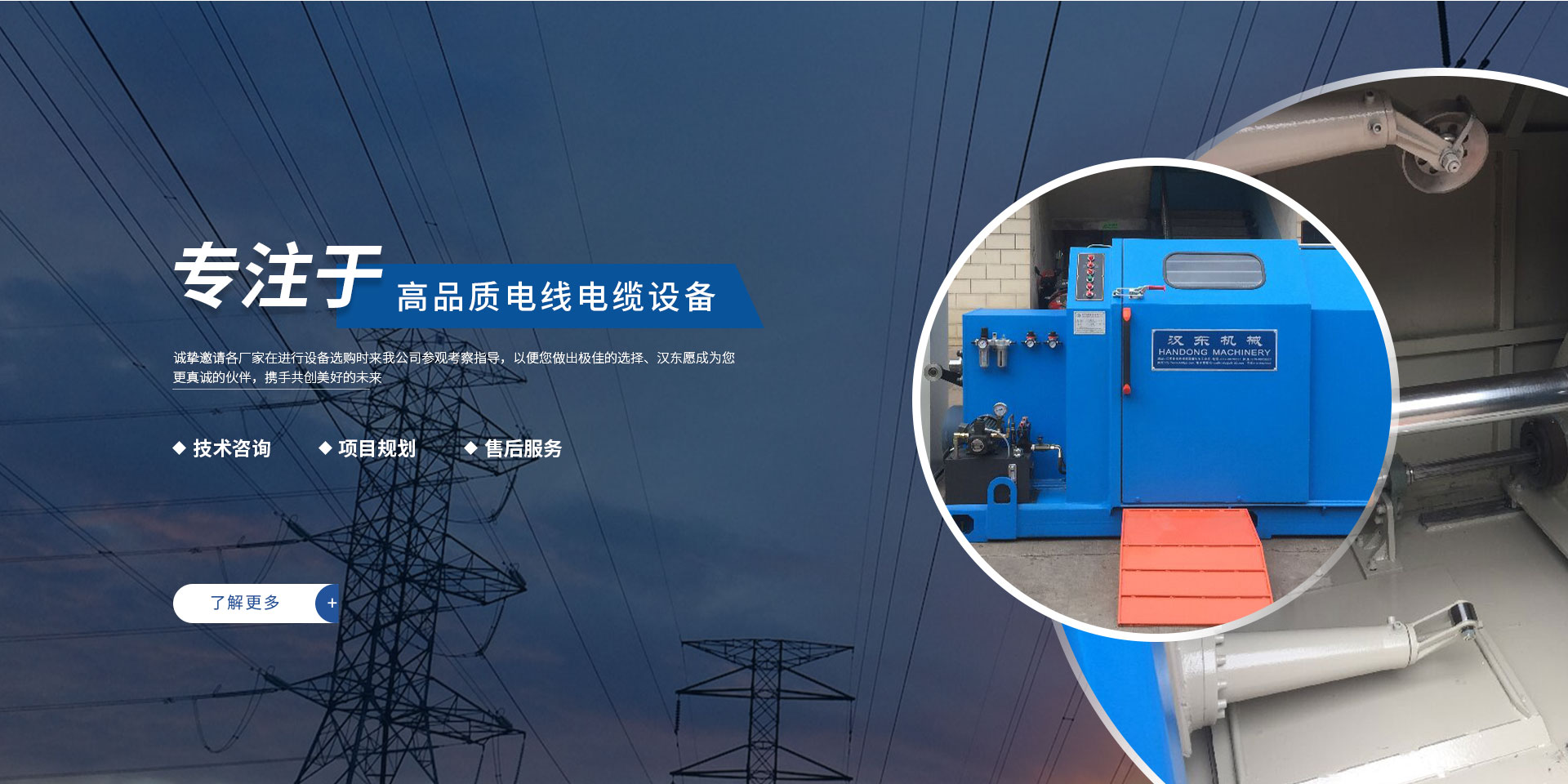 常州漢東機(jī)械始創(chuàng)于2006年,是集電線電纜機(jī)械設(shè)計(jì)、開發(fā)、制造、安裝、調(diào)試為一體化的高科技企業(yè)。本公司自開業(yè)以來,積極引進(jìn)日本,歐美等國(guó)外電線電纜設(shè)備之先進(jìn)技術(shù),先后成功推出了達(dá)到行業(yè)先進(jìn)水平的電線電纜設(shè)備,主要產(chǎn)品有擠出、繞包、束線、成纜等電線電纜固定設(shè)備。在提供系統(tǒng)設(shè)備的同時(shí),還向客戶提供售前技術(shù)咨詢、項(xiàng)目規(guī)劃、以及售后服務(wù)。我公司本著“以人為本、科技先導(dǎo)、用戶為上”的宗旨,為客戶提供牢靠的產(chǎn)品與省心的服務(wù)。漢東愿成為您更真誠(chéng)的伙伴,攜手共創(chuàng)美好的未來! 了解更多+